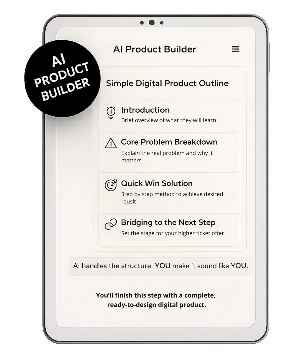 You’ll finish this step with a complete, ready-to-design digital product.