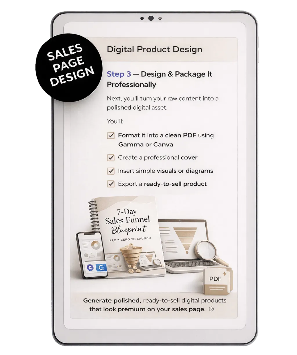 Then we show you how to create high-converting mockups using AI, so your product looks real, valuable, and premium on your sales page.