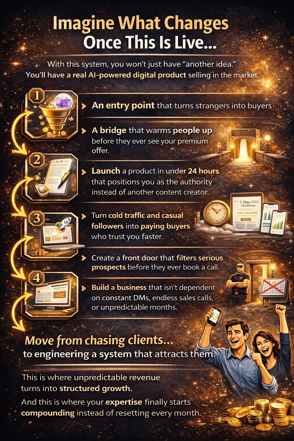 Turn cold traffic and casual followers into paying buyers who trust you faster.