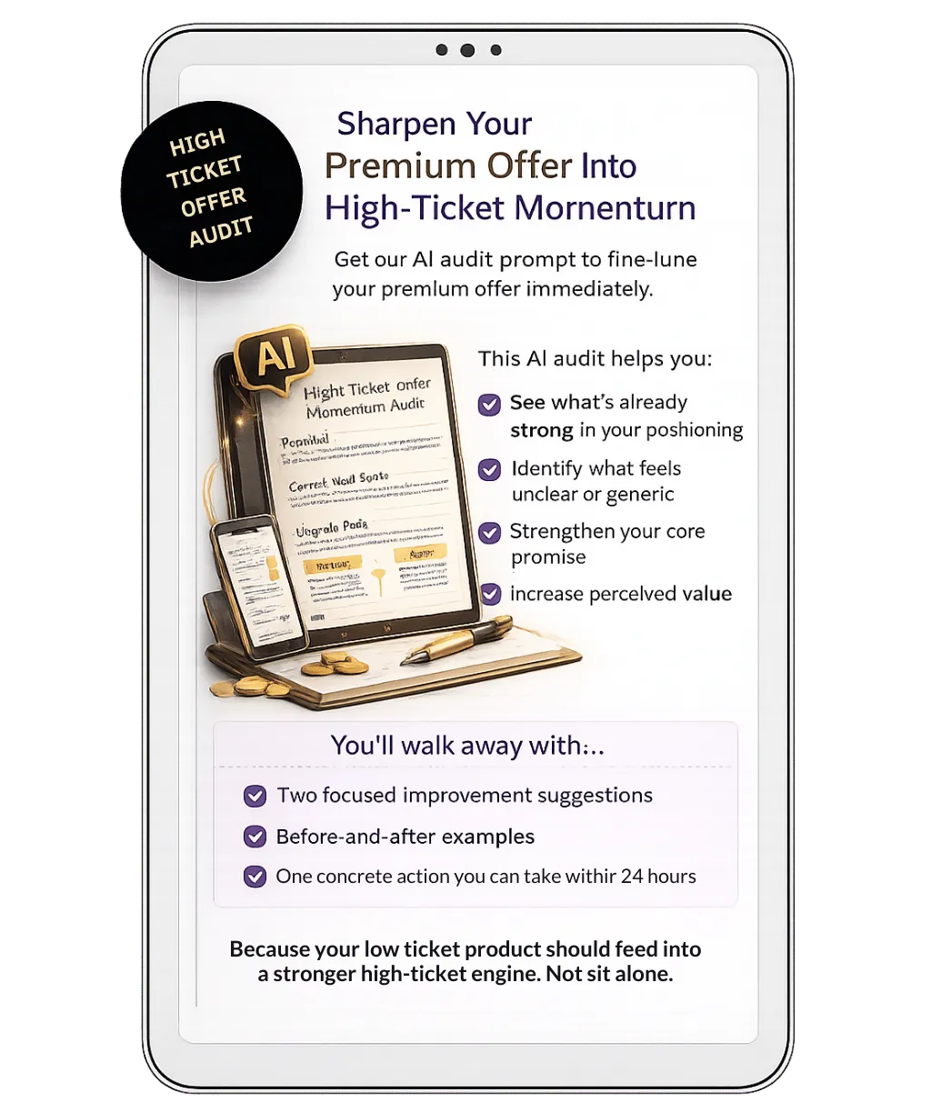 You’ll get our High-Ticket Offer Momentum Audit Prompt, designed to sharpen your premium offer immediately.